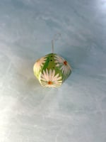 Painted with acrylic paints, protected with a glossy varnish. Each ornament measures 4x4".